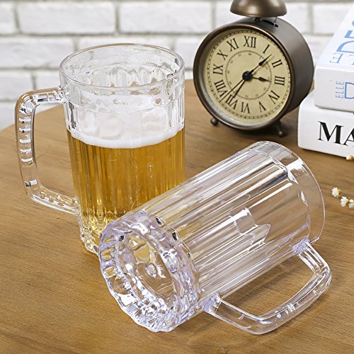 PLASTIC BEER GLASSES CLEAR DRINK PARTY CUPS PICNIC DRINKING MUG TANKARDS, GREAT AS A BEER GIFT, PACK OF 2