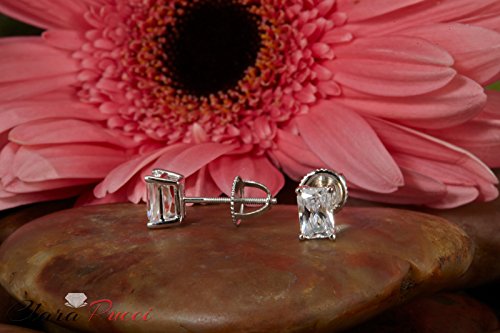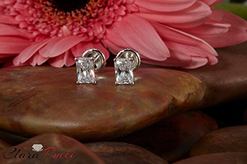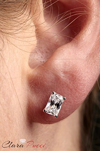Clara Pucci's 6.3x5mm AAAAA excellent cut rectangular cubic zirconia stones in 4-prong setting, 2.10 CTW.