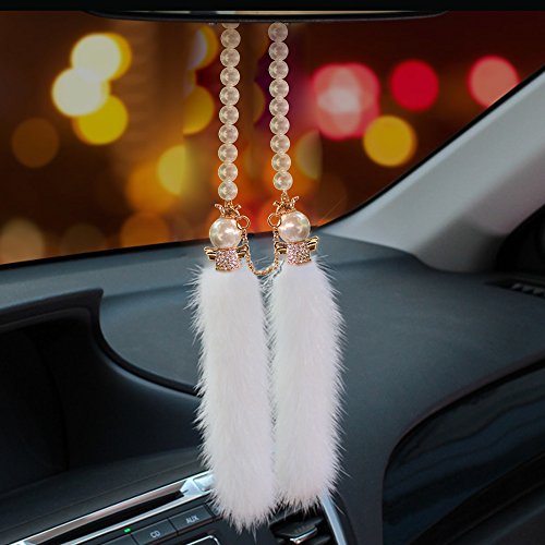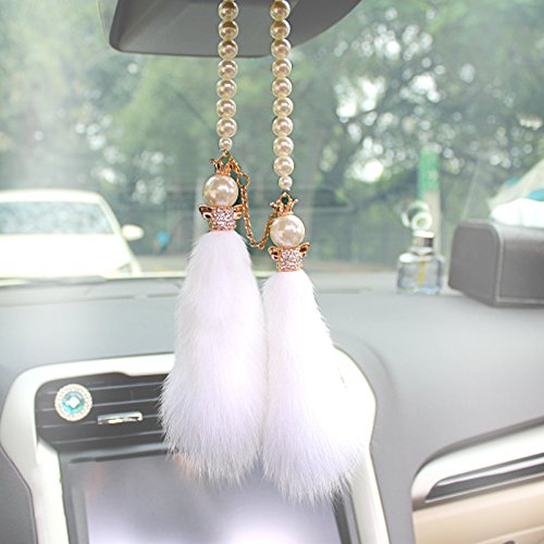 YGMONER Guardian Angel Car Charm Rearview Mirror Hanging Decoration Crystal Fur Ornament