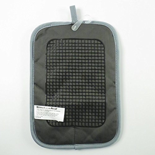KitchenAid Cotton Pot Holder , Microfiber Lined, Printed Grid Silicone Grips (Charcoal)