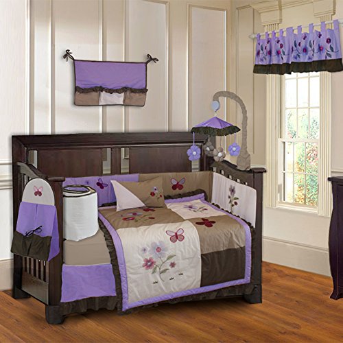 -. Title : BabyFad Purple Blossom 10 Piece Baby Crib Bedding Set