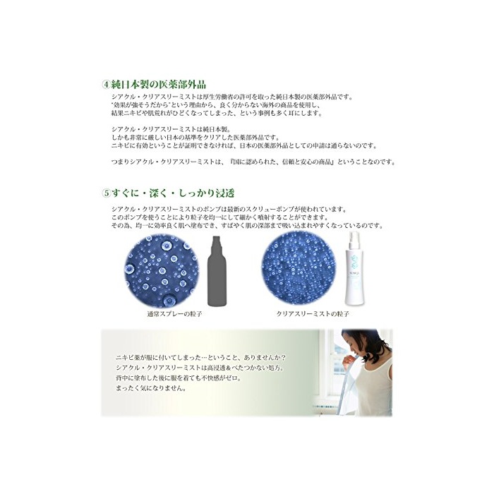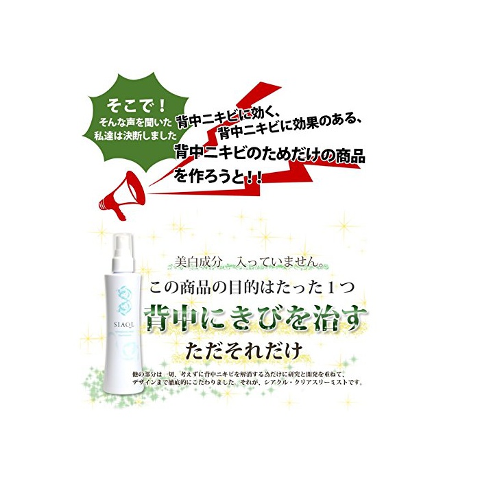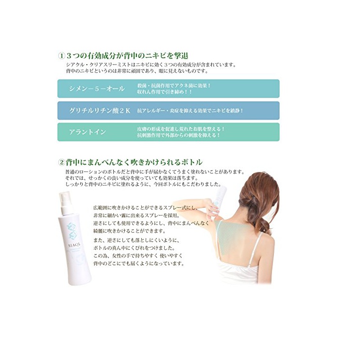 SIAQL 등 여드름 약용 반대에서도 쓸만한 스프레이 《시아쿠루》 클리어 쓰리 미스트 200ml 바디 로션 의약부외품 / 여드름 바래도 동상 금 아 열쇠지 거친 피부 썬탠의 #고 # 효과