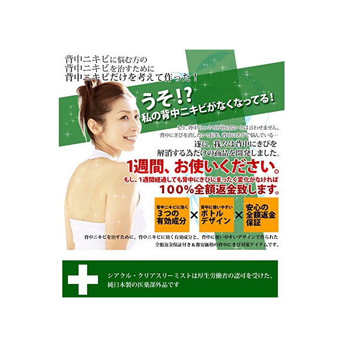 원본상품명: 背中にきび ?用 逆さでも使える スプレ? シアクル クリアスリ?ミスト 200ml ボディロ?ション ??部外品 / にきび あせも しもやけ ひび あかぎれ 肌荒れ 日?けのほてり ?果