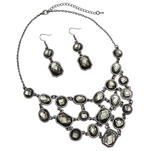 Stylish collar length necklace with smokey grey resin rhinestones in a hematite color