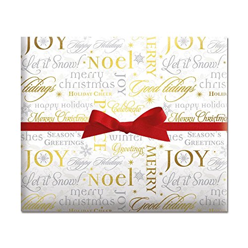 Studio : Current Publisher : Current Binding : Health and Beauty Product Description Super-sized roll displays your holiday wishes such as "Peace," "Love," and "Joy" in gleaming metallic ink. Contains 72 sq. ft. of heavyweight, boutique-quality wrap-enough to wrap up to 18 shirt-sized boxes! 0