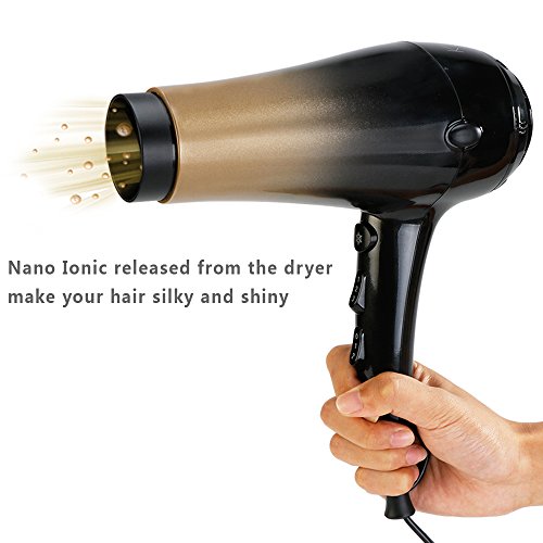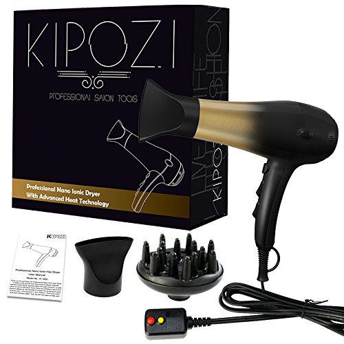 KIPOZI 1875W Hair Dryer,Nano Ionic Blow Dryer Professional Salon Hair Blow Dryer Lightweight Fast Dry Low Noise,with Concentrator & Diffuser,2 Speed & 3...