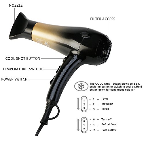 Professional 1875w motor delivering strong consistent airflow to dry even thick wavy hair in less time,Lightweight & Low noise.
