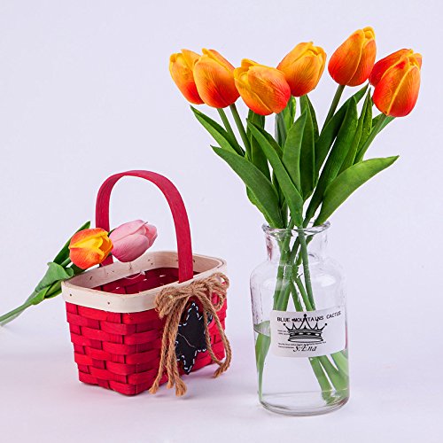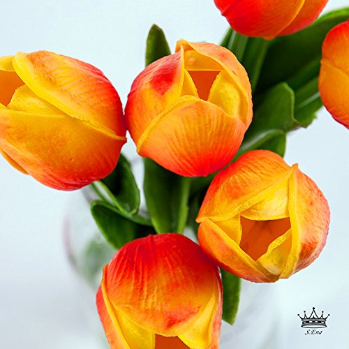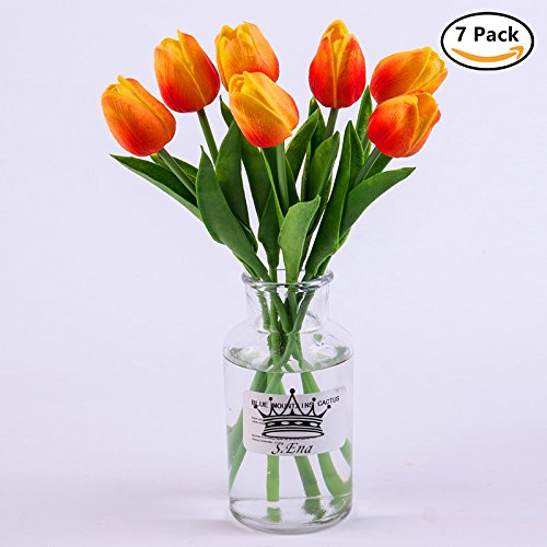 S.Ena, 1 Branch 1 Head Artificial Fake Flowers Leaf Tulips Wedding Floral Home Decor Bouquet Birthday Party DIY, Pack of 7 (Orange)
