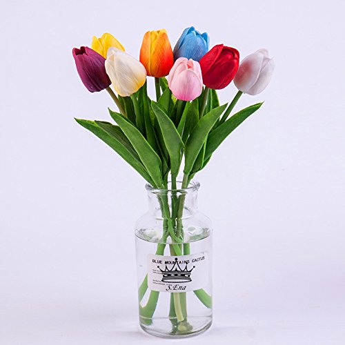 - *BEAUTIFUL & ELEGANT: S. Ena Artificial Silk Fake Tulips Flowers with 1 stem and 1 flower head, flower diameter 1.56'', Each Bunch dimension approx.: 13.3" H x 2.36"W.