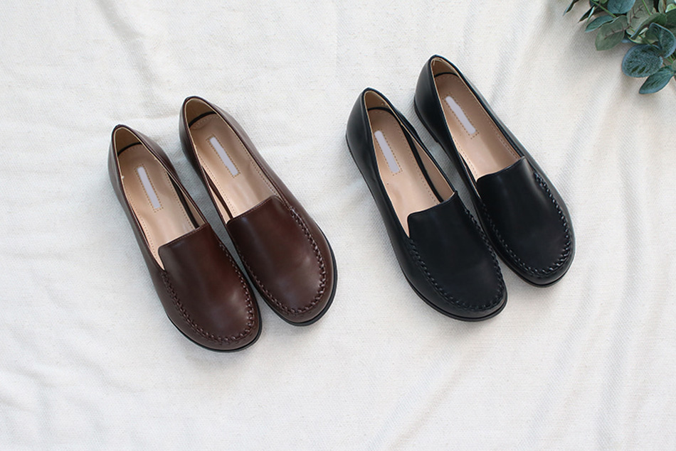 토우라인을 따라 둘러준 꼼꼼한 스티치라인이 밋밋하지 않게 포인트가 되어주어 멋스럽습니다