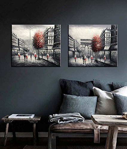 Stretched and Framed decorative canvas oil paintings set for home decorations wall decor, each panel has a black hook already mounted on the wooden bar for easy hanging out of box.