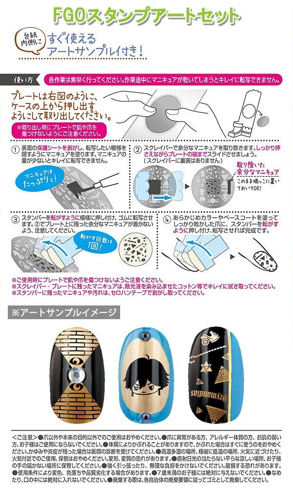 | 製造地 | FGOマニキュア:台湾、ホログラム・FGOスタンプアートセット:中国 |