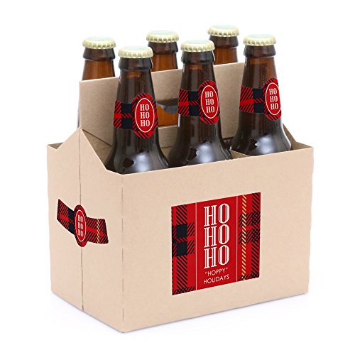 Jolly Santa Claus - 6 Christmas Party Beer Bottle Label with 1 Beer Carrier