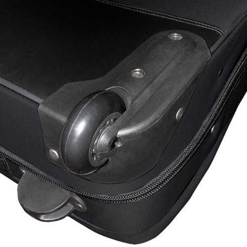-. Feature : Outside pocket / Multi pocketed interior / Telescopic handle / Inline skate wheels