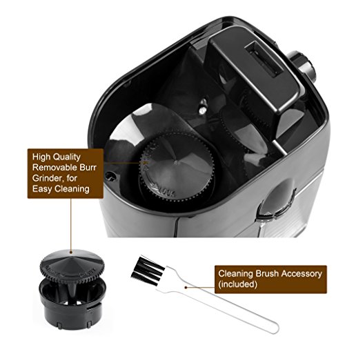 Burr grinding mechanism grinds uniformly and preserves natural aroma.