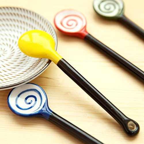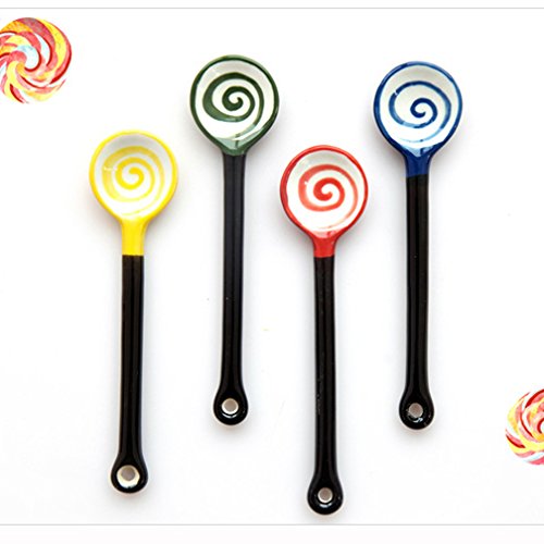Verdental Novelty Lollipop Ceramic Coffee Scoops Stirring Spoon Sugar Spoon (Green)