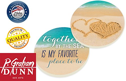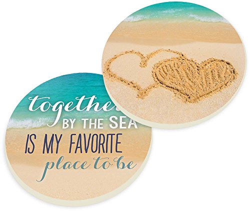 Together By the Sea is my Favorite Place to Be Hearts 2 Piece Ceramic Car Coasters Set