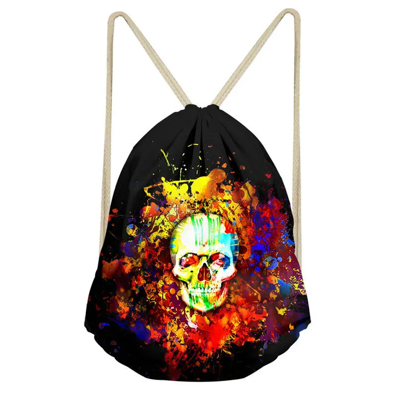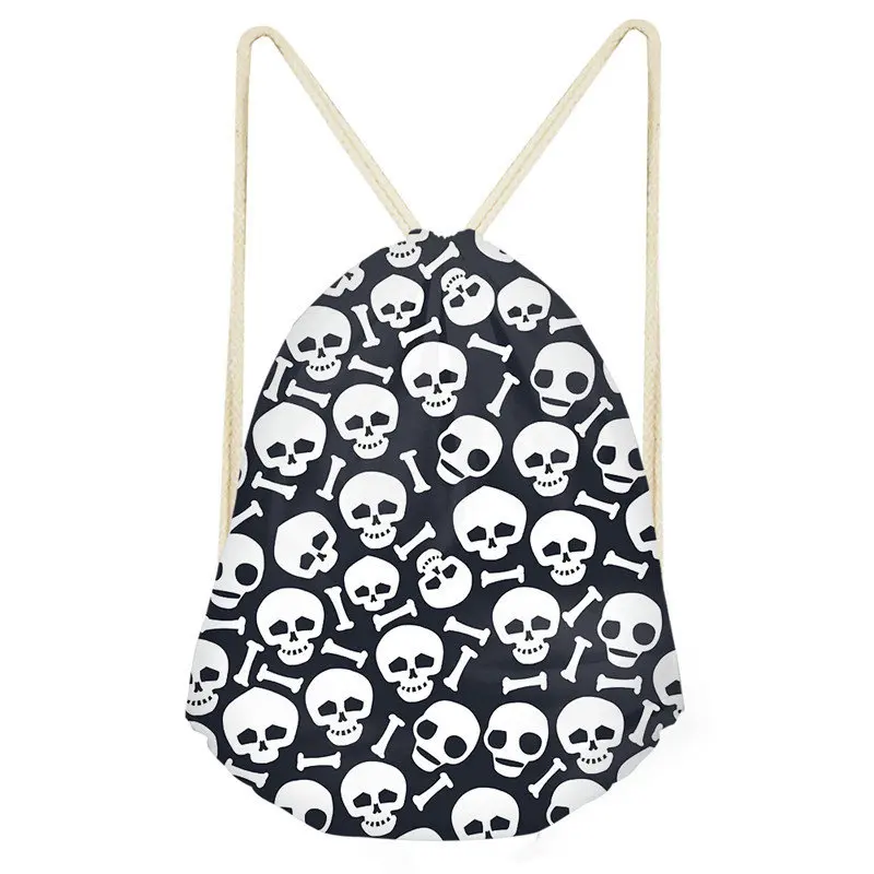 pattern:skull print drawstring bag