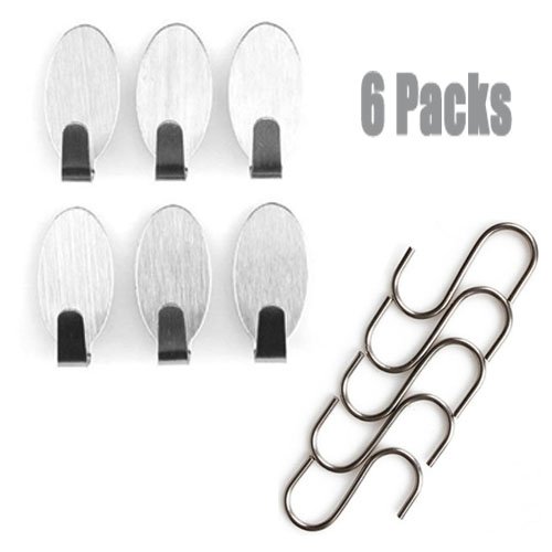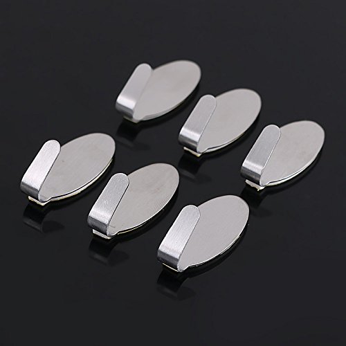 - 6pcs Wall Hook Material: Stainless Steel,Color:Silver,Size:1.25 inches X 0.6 inches 1.18''X0.59''(appr.),The load capacity is 17.6 oz. Suitable for a wood surface,plastic surface,glass,board,tile,ect Perfect forbathroom, door , wall etc.