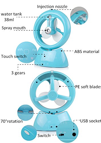 iRSE Aroma Humidifier Fan USB Electric 3 Modes Cool Mist Ultrasonic Essential Oil mixture moisture diffuser for Office Home Study Spa Relaxing Aromatherapy diffuse Fragrance Water (Blue)