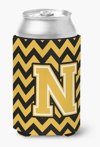 Caroline's Treasures CJ1053-NCC Letter N Chevron Black and Gold Can or Bottle Hugger, Multicolor