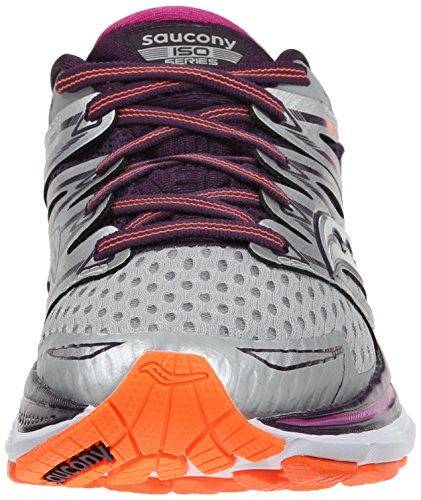 Studio : Saucony Publisher : Saucony Binding : Shoes Product Description A revolution in upper construction, the Saucony Triumph ISO Running Shoes feature intelligent upper engineering, designed to work with the mechanics of the the foot throughout the gait cycle to create one of the most dynamic and adaptable fits on the market. According to the Running USA 2013 National Runner Survey, 92% of respondents surveyed selected "fit" as the most important criteria when purchasing running shoes. Capitalising on this their designers have created a revolution in fit. ISOFITTM. A plush, ultra soft inner sleeve crafted from a malleable air mesh, contours to the wearers foot, creating an almost sock like feel. Binding the midfoot together and providing structural integrity the floating support cage cradles the midfoot; adapting to the foot's size, shape and movement, allowing the shoe to respond to the individual runner's gait throughout each stride. Complimenting the design and technology of ISOFITTM an open toe box construction enhanced the already plush feel and delivers superior comfort. Creating a truly unique feel and experience Saucony have re engineered their PowerGridTM technology, creating PWRGRID TM. By adding a Powerfoam material and integrating it with GRIDTM technology, Saucony have created a system that effectively centres the foot, absorbs impact and distributes pressure. The PWRGRID platform's increased stack heights deliver over 20% more cushioning and 15% more resiliency than the previous version, increasing versatility and prolonging the longevity of the shoes capabilities. The re-engineered geometry and materials work with the runners stride, maintaining a smooth and fluid transition, for an unmatched ride. Working in concert with the re-engineered PWRGRID technology, SRC impact zone provides durable shock absorption at impact, creating a smoother transition from heel to toe. The traditional shank has been removed to save weight, replaced with foam for a cleaner transition. Complimenting the outsole design iBR 0