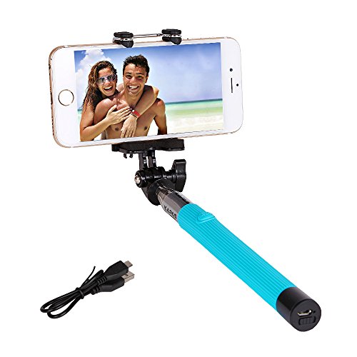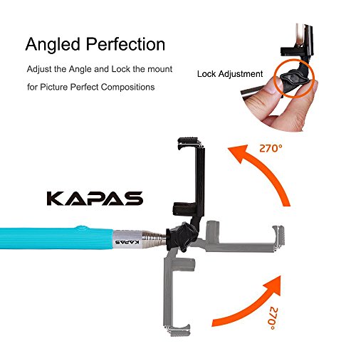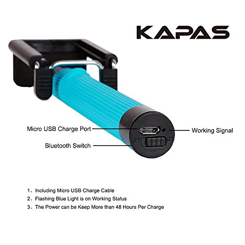 Wireless Selfie Stick, KAPAS Foldable 3.5ft Extends Up Premium Bluetooth Remote Shutter Extendable Monopod with Adjustable Holder for iPhone Samsung and other IOS and Android Smartphone (Light BLue)