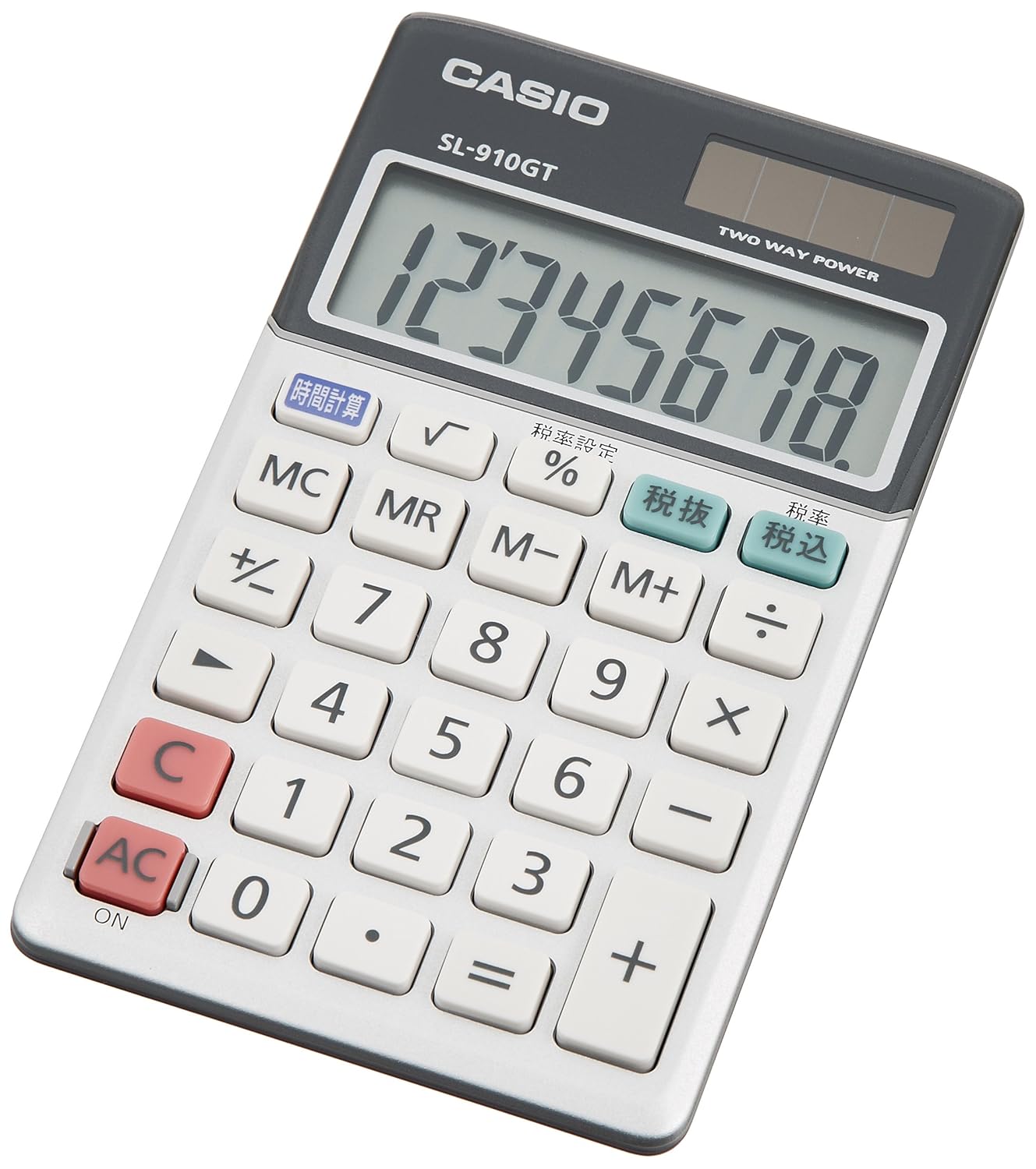 ●桁数:8 ●メモリー:1 ●電源種類:T・W・P(太陽電池と補助電池の併用)(CR2016) ●電池数:1 ●電池寿命:約4年 ●大きさ(奥行×幅×高さ)mm:118.5×70×8.5 ●質量(g):60 機能:税計算,時間計算,計算状態表示,マルチ%,√(平方根),四則定数計算,概数計算,桁下げ,(シフト),+/-(サインチェンジ),小数の端数処理(四捨五入/切り捨て),小数点セレクター,キーロールオーバー機能(早打ち機能) ポケットに、カバンに。携帯性抜群の手帳タイプ電卓