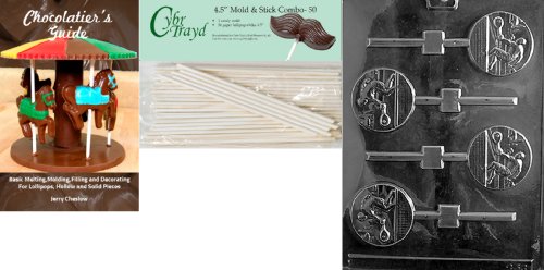 Cybrtrayd 'Tennis Lolly' Sports Chocolate Candy Mold with 50 4.5-Inch Lollipop Sticks and Chocolatier's Guide