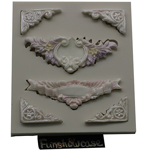 Funshowcase 6 Cavity Baroque Style Curlicues Scroll Lace Fondant Silicone Mold for Sugarcraft, Cake Border Decoration, Cupcake Topper, Jewelry, Polymer Clay, Crafting Projects