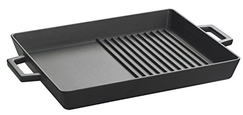 Lava ECO Enameled Cast Iron 10 x 12-1/2 inch Combination Grill and Griddle Pan,Slate Black