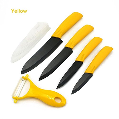 KAWAICAT 지르코니아 검은 병3 4 5 6 인치형+깎아 가죽(껍질)기+덮혀 세라믹도 호부엌 칼날 (노란색)