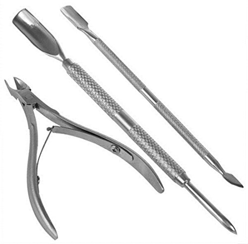 -. Feature : Eminent Cuticle Nipper Nail Cuticle Spoon Pusher Remover Color Sliver / Large Size Cuticle Nail Pusher Length Approx. 14.5cm., Color Silver, Material Stainless steel / Small Size Cuticle Nail Pusher Material Stainless steel, Length 12.5cm, Color Sliver / Cuticle Nipper Cutter They measure approximately 4" (101 mm) long / Package Include 1 x Large Size Cuticle Nail Pusher, 1 x Small Size Cuticle Nail Pusher, 1 x Cuticle Nipper Cutter / 100% Brand New and Satisfaction Guaranteed