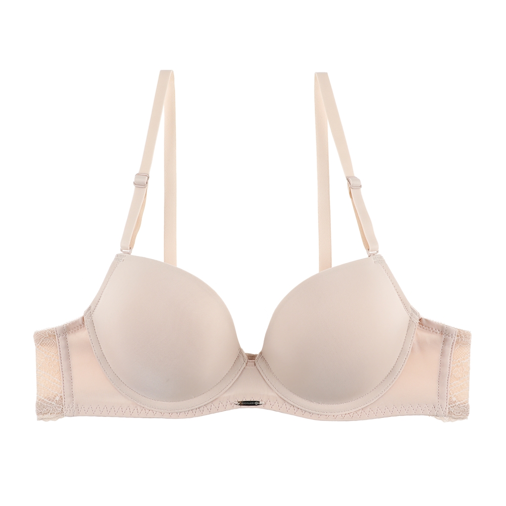 날개를 레이스로 설계하여 등살을 잡아주는 효과 및 디자인 포인트로 작용.75A컵은 중푸쉬, 80A컵은 약푸쉬로 설계됨.