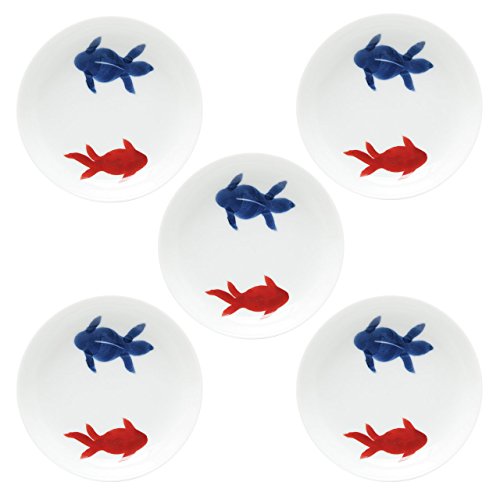 원본상품명: 波佐見? Tenugui 3寸丸小皿5枚セット(金魚) 9.5cm 康創窯 kso0466