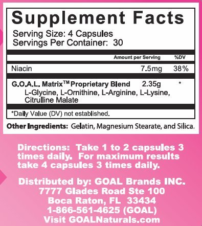 GOAL - G.O.A.L. MATRIX Amino Acids Complex Pills for Women- 120 capsules... Made in the USA, Order with Confidence each bottle of Goal Amino Acid Complex is Back By Our Iron-Clad 100% Money Back Guarantee!Feature