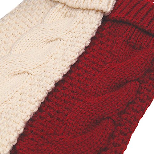 Wiliboat Unique Knit Christmas Stockings Red and Cream 2 Pack Large size Classic Braided Knit Knitted Christmas Stockings, Xmas Rustic Stocking Decorations for Family Holiday Season Decor