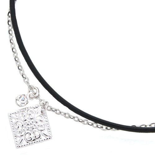 -. Feature : チェーン長さ:約17cm/アジャスター長さ:約8cm / 革ひも長さ:約16cm / スクエアサイズ:10mm×10mm / ストーンサイズ:直径3mm(ストーン素材:スワロフスキー) / 素材:メッキ