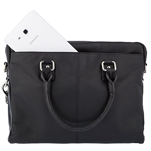 Genuine Leather Briefcase Shoulder Bag 13' Laptop Bag (Black) SD 07