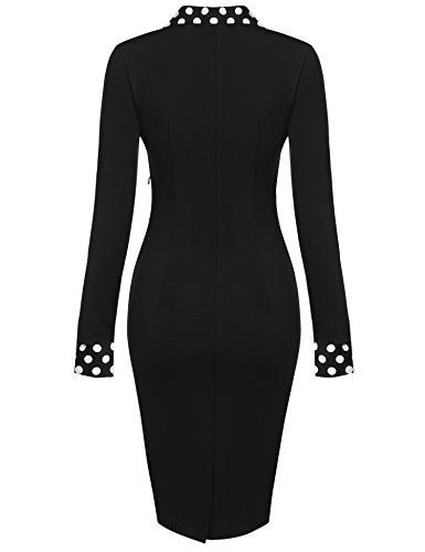 Title : ACEVOG Women's Vintage Dot Patchwork Long Sleeve Turn-down Collar Pencil Dress,Black,X-Large