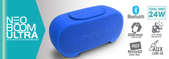 • Neo Boom Ultra - a Bluetooth-enabled all-in-one speaker that delivers room-filling sound and thunderous bass. It also provides up to 4 hours of playback time from a single charge of its built-in, high-capacity 2,000mAh Li-ion (lithium-ion) rechargable battery.