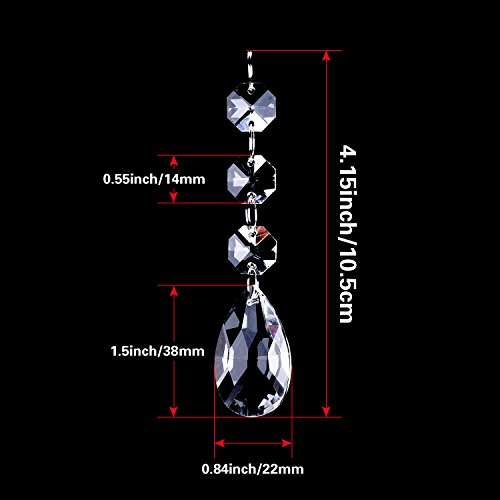 - Teardrop chandelier pendants:each prisms beads strand length is up to 110 mm, teardrop prism length is 38 mm, octagon beads diameter is 14 mm