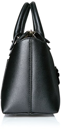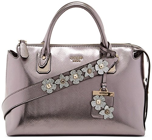 Mini satchel handbag featuring removable cross-body strap appliqued with studded flowers