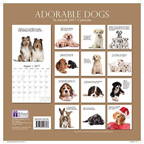 Cute Adorable Dogs and Puppies 2017 Monthly Wall Calendar, 12" x 12"