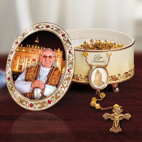 Feature : Celebrate the joyous election of the first Latin American Pontiff with the limited-edition His Holiness Pope Francis Heirloom Porcelain® Music Box, exclusively from The Bradford Exchange / Meticulously handcrafted in hand-glazed, triple-fired Heirloom Porcelain® with resplendent golden feet for added elegance / Full-color imagery of Pope Francis graces the lid of this porcelain box, capturing his warm smile and the bright lights of the Vatican on his first night as pope / Measures 3" W x 4" H; 7.6 cm W x 10.2 cm / Plays the inspiring melody of "Amazing Grace"