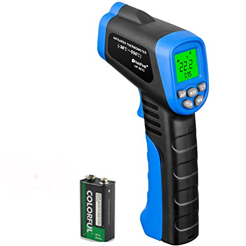 HOLDPEAK 981C Non-Contact Digital Laser Infrared Thermometer Temperature Gun Instant-read -58 to 1022℉ (-50 to 550℃) with 9V Battery and Emissivity 0.1-1.0(Adjustable)