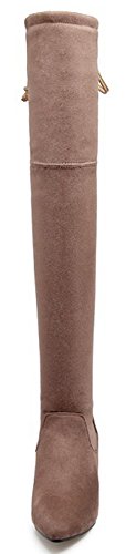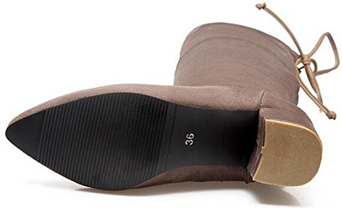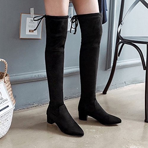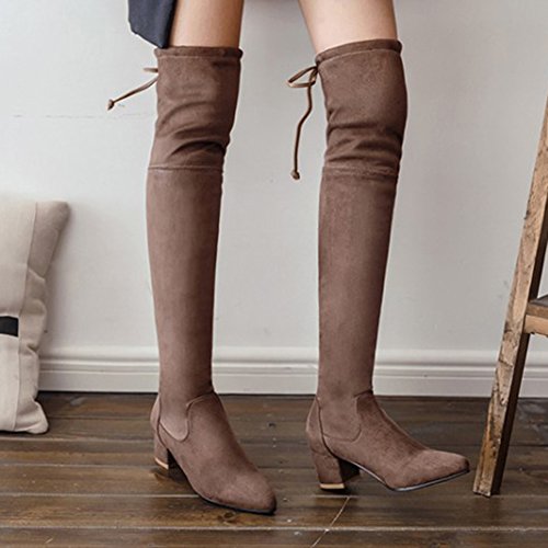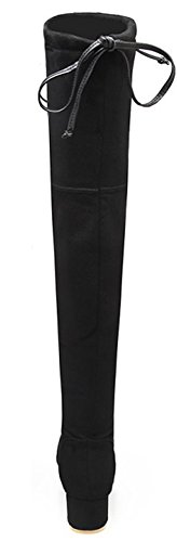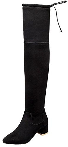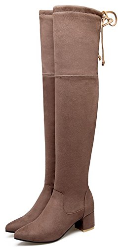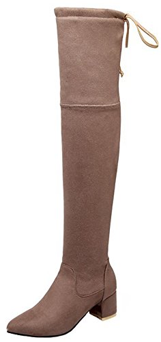 (Mofri)/Women's/Boots/DIRECT FROM USA/Mofri Women's Sexy Faux Suede Drawstring Pointed Toe Block Medium Heel Skinny Pull On Thigh Hig...