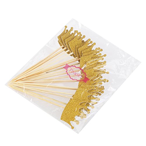 Tinksky Gold Glitter Crown Wedding Engagement Valentine's Day Wooden Cake Topper Photo Props Favors, pack of 20