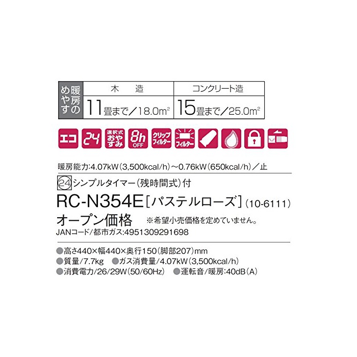 린나이(Rinnai) 가스 팬 히터 도시 가스13A용 RC-N354E RC-N354E 13A