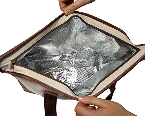 Our Design has an insulated aluminum interior that will keep food cold or hot, Two webbed handles, and has been CPSIA Lead Tested